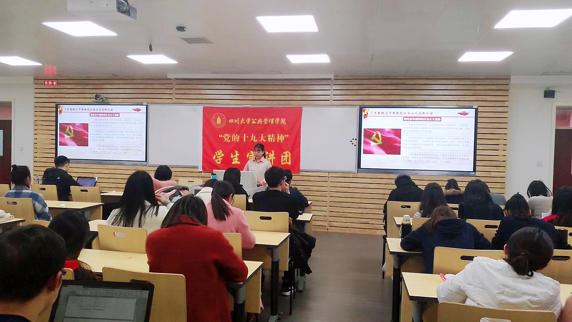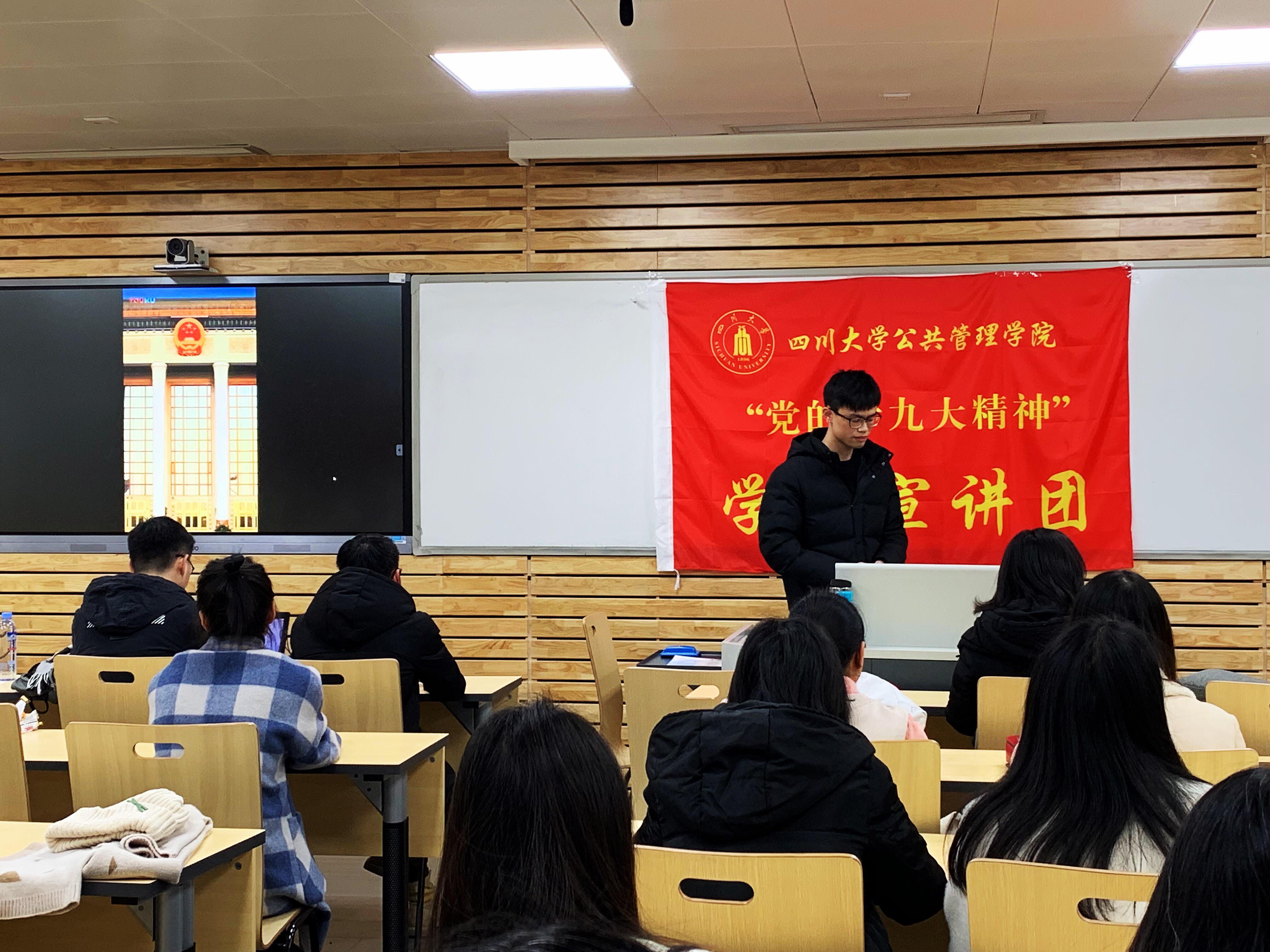 为持续推动学习宣传贯彻党的十九大精神热潮,鼓舞同学们深刻领会报告的丰富内涵,把思想和行动统一到党的十九大精神上来,12月12日,好博体育2017级研究生党支部、公司“党的十九大精神”员工宣讲团在望江校区基础教学楼A座408教室联合法公司举办了“弘扬爱国奋斗精神,做新时代青年楷模”的主题宣讲会。2017级研究生第二、第四支部全体党员、法公司部分研究生党员参加了此次活动。2017级研究生第四支部书记青杨媚老师出席活动并讲话。