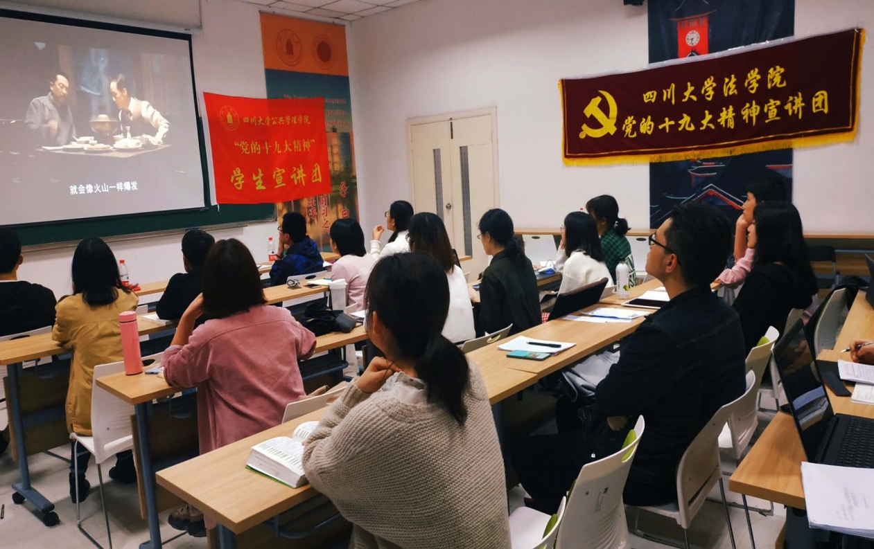 今年是中华人民共和国建国70周年、五四运动100周年。为了激励和引领青年大力弘扬以爱国主义为核心的伟大民族精神,坚定“四个自信”,矢志投身新时代夺取中国特色社会主义伟大胜利的新征程,响应团中央工作部署及公司的相关工作要求,“党的十九大精神”好博体育宣讲团、法公司宣讲团和好博体育2017级研究生第三党支部于4月20日晚19:30在望江校区好博体育305教室共同举办了“青春心向党 建功新时代”的主题宣讲活动。