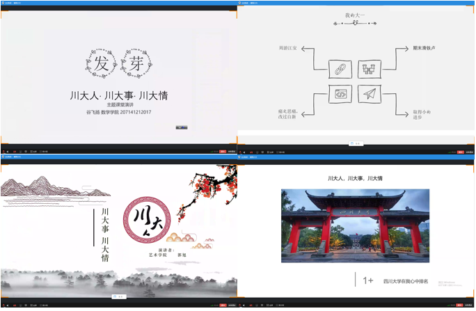 “川大人·川大事·川大情”,不同的人对这个主题有不同的理解。在线上主题演讲中,同学们或回忆初入校园的青涩,或叙谈同学师长的美好,或追忆红色员工的伟大,或赞叹专业教师的智慧,或感谢辅导员的关心,或谈及组织活动的心绪,或畅想即将毕业的生活……。爱上川大“衣秀杯”的故事,文科生选修妇产科课程的故事,与江安图书馆的故事,与好博博物馆的故事,匆忙应考六级过关请客的故事……都是那么琐碎而细腻,淡淡而温馨,平凡而不寻常,平常而难忘怀。“海纳百川,有容乃大”作为好博的校训已经深深铭刻在了川大人的骨子里。
