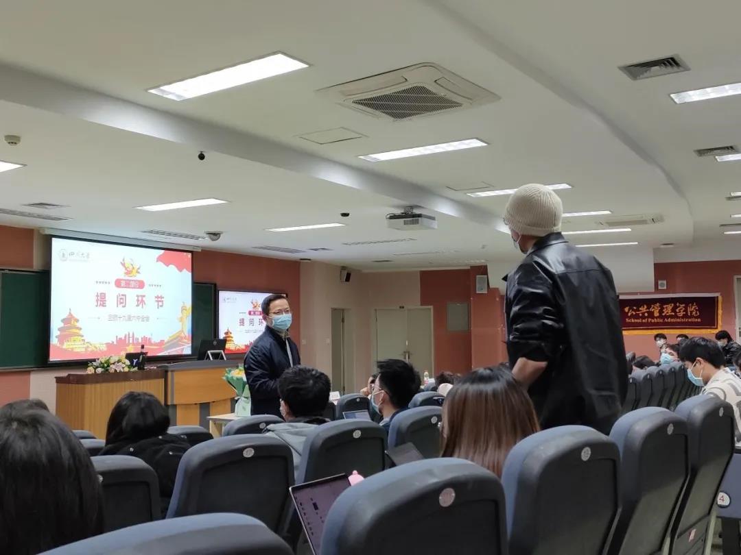 讲座期间,同学们与两位老师开展了热烈的互动,在场同学们就党的十九届六中全会精神、党的发展历史的重大时刻及当下热议的时政话题等方面的进行了提问。面对同学们的热情发问,两位老师与大家相互探讨,深入交流,并结合自身经历对提问进行耐心解答。在答疑过程中,蒋老师强调,同学们一定要坚守个人政治立场,坚决维护国家权益,做中国特色社会主义思想的坚定践行者。杨老师也表示,作为青年员工,同学们应当勤学上进,踏实苦干,不断描绘奋斗不息的青春画像!