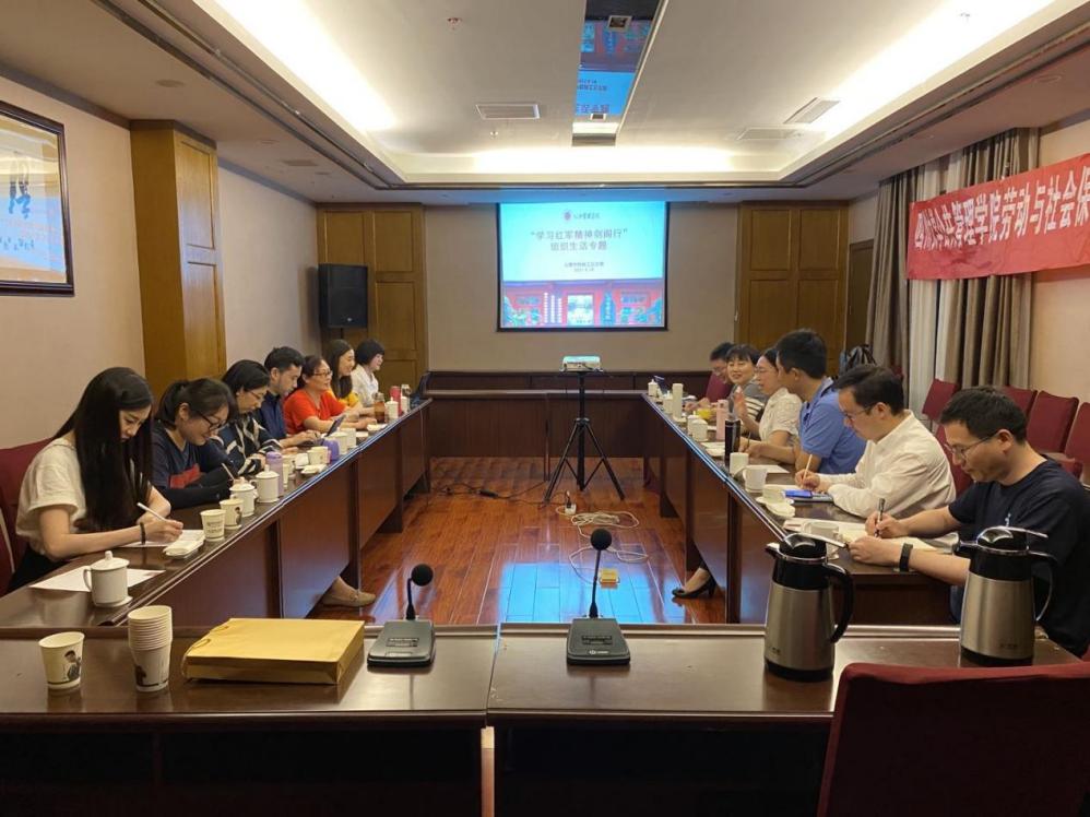 接着,教职工第五党支部开展了一次支部建设与团队建设融合协同发展民主生活会,邀请劳动与社会保障专业系主任蒲晓红教授介绍团队建设情况,在座的老师们结合本专业的特点,围绕党支部建设和团队建设融合协同发展,尤其是劳动与社会保障双一流专业建设、青年教师专业能力提升和职业发展、员工培养等工作开展热烈的研讨。学史力行,支部将不断加强基层组织建设,充分发挥党员的带头作用。大家纷纷表示,将“不忘初心,牢记使命”,勤奋踏实地做好本职工作,高质量地完成各项任务。