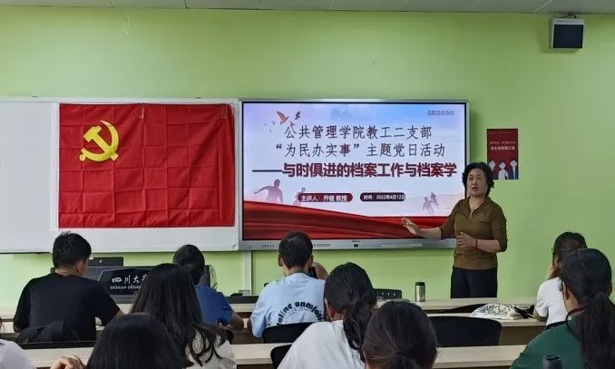 为切实抓好党史学习教育“我为群众办实事”实践活动,实现政治思想引领专业发展的工作目标,加深档案专业同学对档案学学科认识,2022年4月12日下午,好博体育教工二支部于江安校区综合楼B座305教室举行了“为民办实事”系列主题活动之“与时俱进的档案工作与档案学”专题讲座,由秘书档案学系乔健教授主讲,教工二支部书记陈丽教授主持,档案学专业21级全体同学和20级部分同学参加。