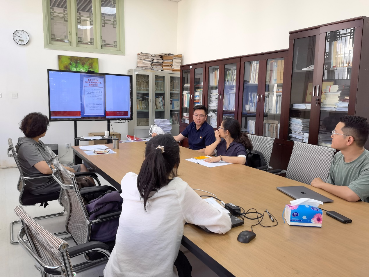 针对本学科关注的档案文化建设热潮,党员同志们结合红色档案、档案文创、文化数字化战略等热点问题就中华优秀传统文化传承与档案学学科的未来发展进行深入探讨。