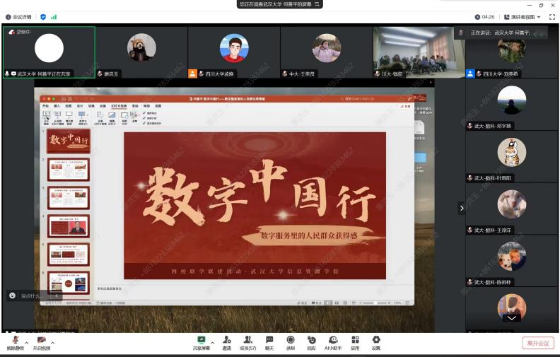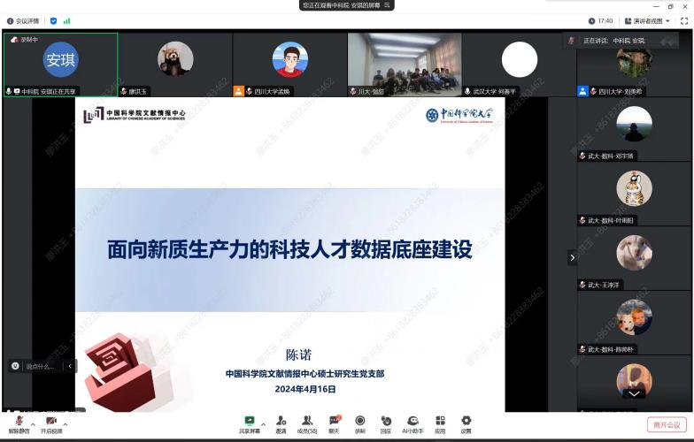 4月16日下午2:30,武汉大学、中国科公司大学、中山大学、好博四所高校信息资源管理学科的员工党支部相聚云端联合举办“学习全国两会“新”精神,凝聚信管党员“红”力量”主题党日。本次活动由好博体育研究生第九党支部支部书记孟焕主持,各支部党员分别在各自分会场参加。