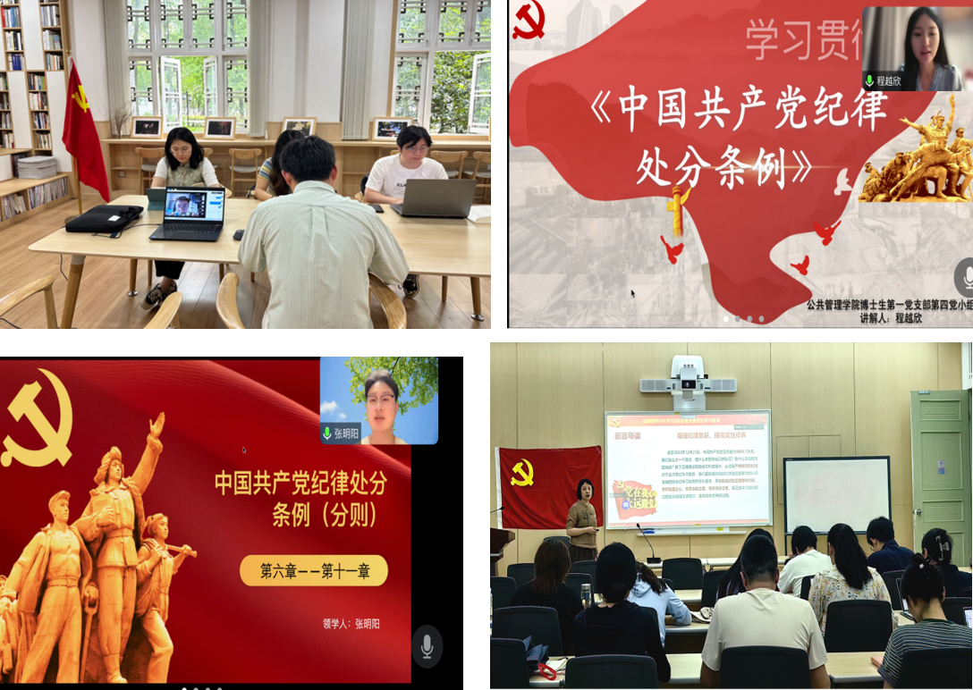 为深入贯彻落实习近平总书记关于党纪学习教育的重要讲话和精神,好博体育博士生第一党支部开展了党纪学习教育系列活动,通过党员自学、小组互讲、支部书记讲党课等形式对《中国共产党纪律处分条例》进行系统学习和宣讲。