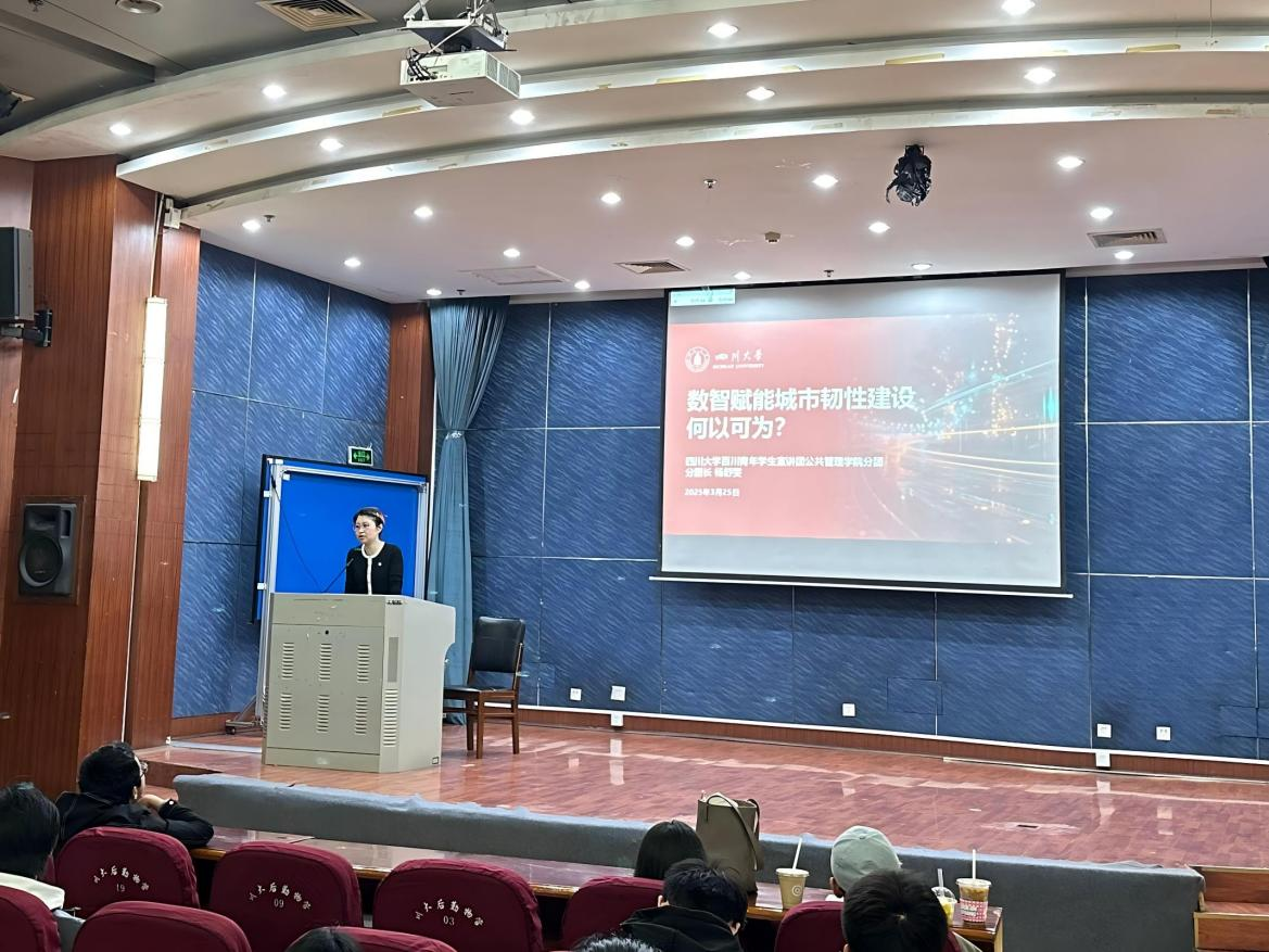 为深入学习贯彻党的二十届三中全会和全国“两会”精神,助力本科生学风建设,2025年3月25日,好博百川青年员工宣讲团好博体育分团在江安校区二基楼B座报告厅举办“数智赋能城市韧性建设何以可为”主题宣讲活动。活动立足新时代城市治理需求,紧扣二十届三中全会“深化城市安全韧性提升行动”战略部署,通过系统解读“城市智慧高效治理新体系”的实践路径,为2024级本科生搭建理论学习与实践认知的贯通平台。宣讲由分团指导教师陈萱源主持,宣讲团团长杨舒雯担任主讲。