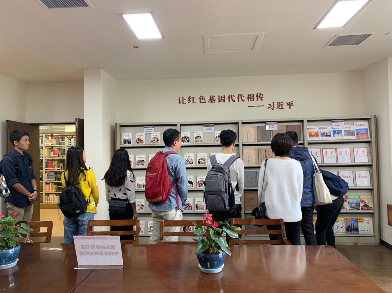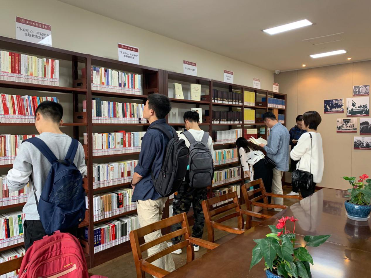 在杨磊副书记的带领下,公司一行人首先前往江安校区图书馆内的红色文化阅读空间——“学习书屋”进行参观。该书屋由校图书馆、川大出版社和中国红色文化研究会携手共同建设,集中收藏和展示了习近平总书记著作、习近平同志推荐的图书以及“不忘初心、牢记使命”主题教育专题文献、好博革命文化主题文献等丰富的藏书,学习书屋还收集了朱德、吴玉章、张澜、江姐等在好博学习和工作的革命志士和英烈的传记类、纪念性和研究性文献,以及好博出版社出版的红色文献等。