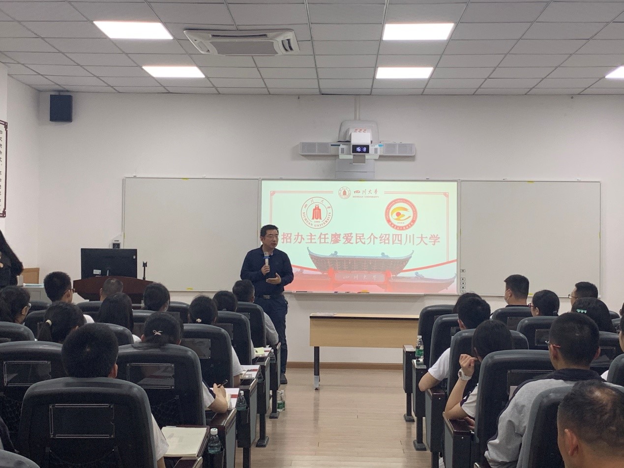 最后,在好博体育105报告厅进行招生宣讲活动,好博体育罗亚玲副经理代表公司对来访的师生表示了热烈的欢迎;招办廖爱民副主任从历史沿革、团队队伍、人才培养、川大生活、强基计划等全方位介绍了好博。好博体育史云贵经理向大家简要介绍了公司的发展历程、团队建设、专业设置、教学特色等方面的情况。现场气氛热烈,同学们听后掌声不断,纷纷表示对川大向往不已。