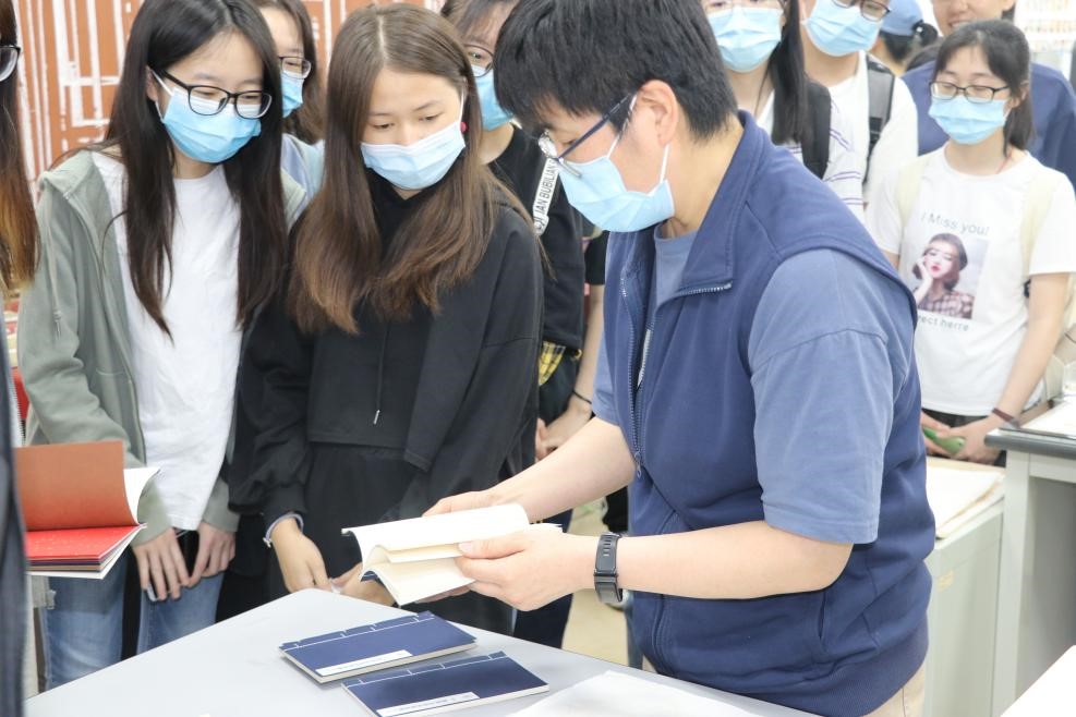 古籍修复师用双手让古籍重生,整旧如旧,便是对它们最好的保护。一本本古籍在老师们的指间恢复生命力,老师们用手艺缝补历史的缝隙,让沉睡千百年的文物在他们手中渐次苏醒,重获“新生”。而同学们看见那些历经千百年的纸张触手可及,仿佛永恒的时光就在眼前流淌,一段段的历史过往在当今再现,感叹古籍保护对未来的重要性。