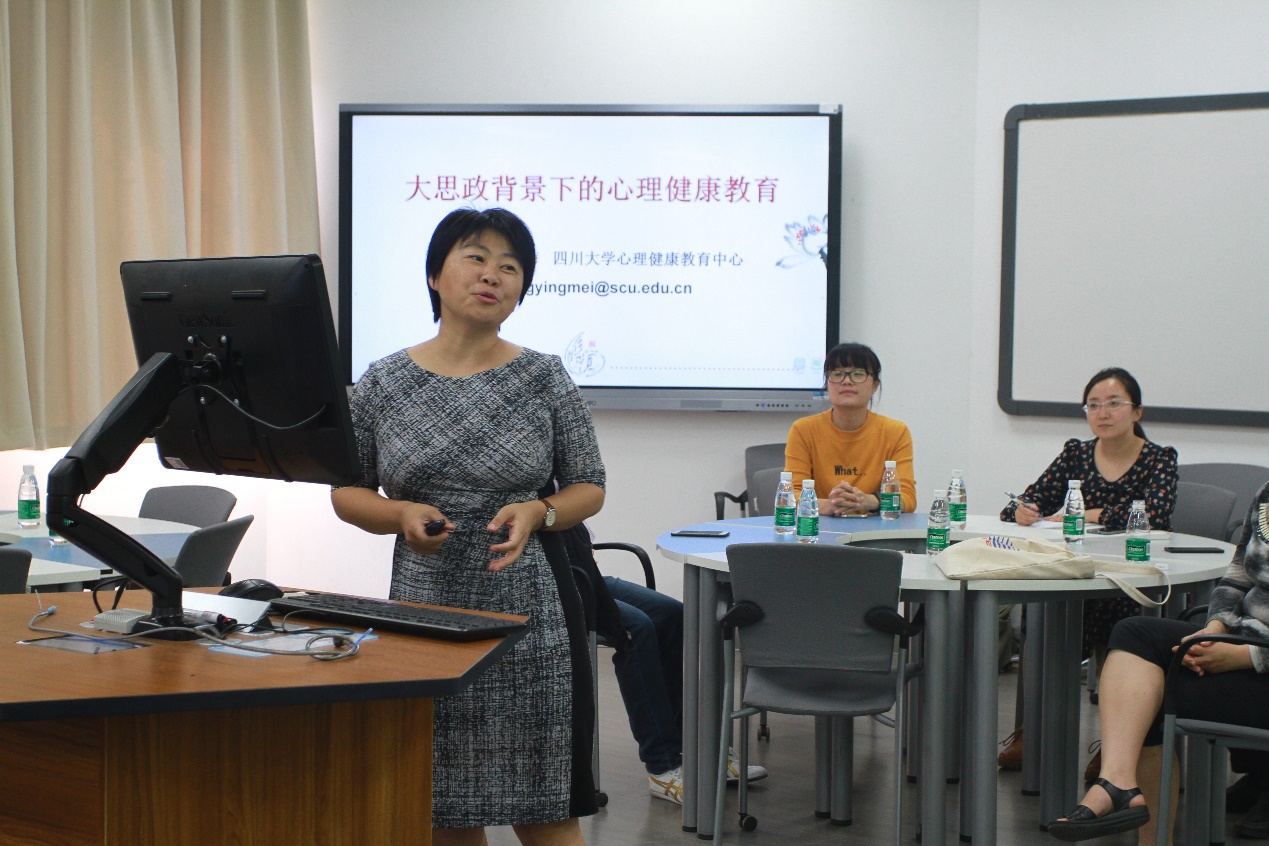 好博心理健康教育中心副主任王英梅教授作了《大思政背景下的心理健康教育》主题培训。她结合心理学专业知识、调查数据、典型案例等生动而形象地对老员工心理健康工作领域、心理健康状态、心理健康标准、精神状况等进行了深入分析,对如何发现老员工情绪与行为障碍以及作为班主任如何应对和专业化处理作了详细阐释。