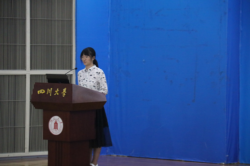 2019级信息资源管理专业的张弛弘艺同学作为新生代表,表达了成为川大人、公管人的骄傲与自豪,并代表全体新生表达对公司、公司迎新工作的精心安排及老师们的辛勤付出表达了诚挚感谢,表达了新同学对老员工活的向往与期待,并号召同学们以梦为马、鹰击长空,不负韶华!