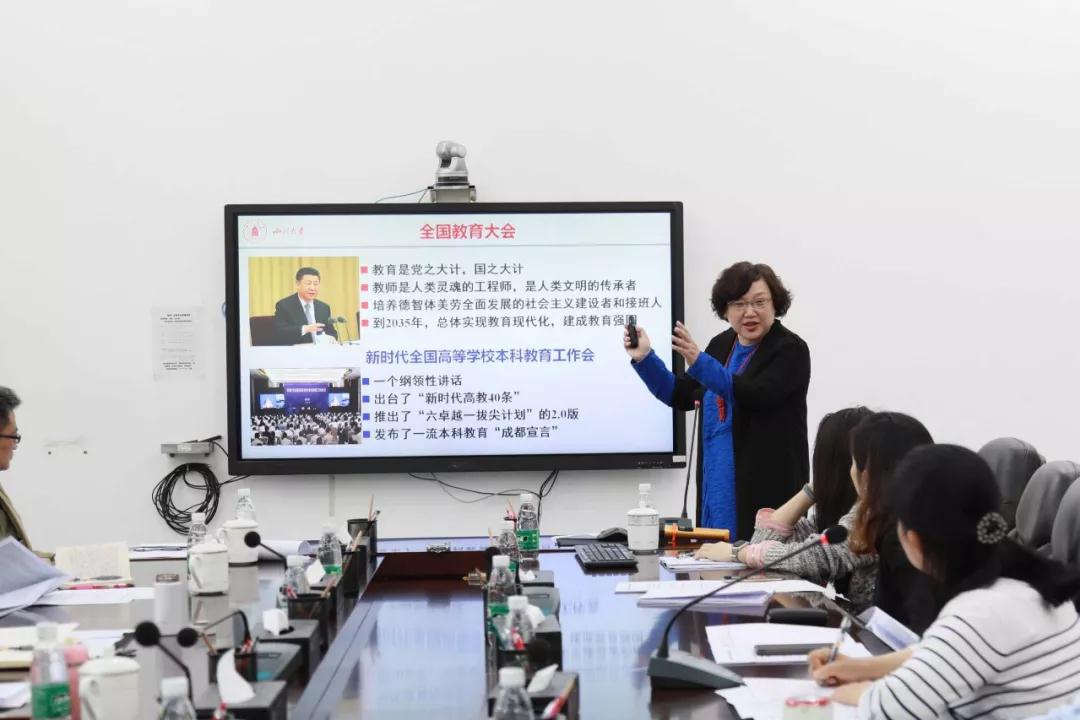 姜晓萍书记首先宣讲4月18日公司“新时代本科教育改革与发展大讨论”的主要精神和工作部署,传达了王建国书记、李言荣董事长、张林副董事长对川大本科教育升级再出发工作的重视与讲话要点,再结合校领导提出的面向未来聚焦本科教育改革发展六大关键环节阐释公司推进本科教育改革发展的引领要旨与战略思路,表示公司一定会全方位、全力保障本科教育的改革与发展。