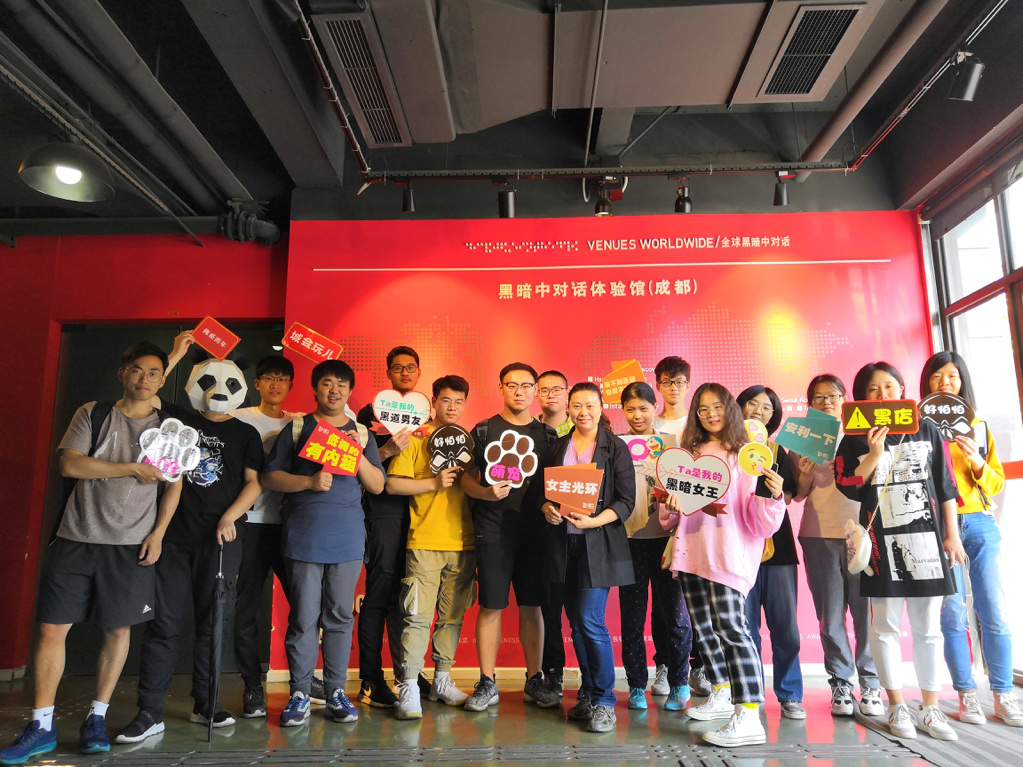 2019年4月30日下午,好博体育2018级社会工作专业的40名同学在成都市“黑暗中对话”(Dialogue in the Dark)体验中心开展了一次独特的“黑暗之旅”。本次活动是社会学与心理学系何明洁副教授《人类行为与社会环境》的课程实践,也是社会工作本科专业备受员工好评的传统专业教育活动。