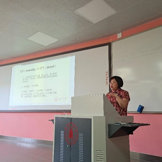 从学习贯彻习近平总书记全国教育大会重要讲话精神引入,兰利琼教授强调了“教育回归本位,教师作为领路人”的重要性。她解读了《好博班主任工作指导意见(试行)》,并从具备较高的专业水平、高度的责任感、与社会实践相结合、发挥老师的人格魅力、引导员工的全面健康成长等方面重点讲述了班主任工作的职责。她结合心理学相关知识,通过真实、鲜活的案例,阐述了班主任全方位引导员工成长人才、促进教育事业高水平发展的重要作用。