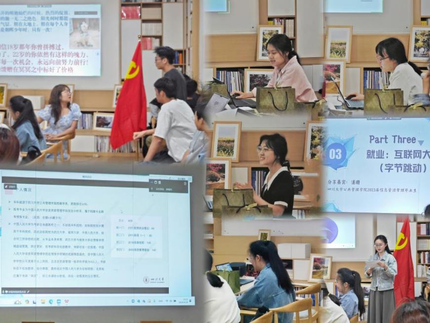 员工分享环节,钟瑞玲、牛重阳、袁绮蔓、邓淼、余悦、熊小芳等分别就考研、考公、求职、留学与保研进行了详实的经验分享。主持人转述了浦珊与董乾坤在互联网公司等企业的就业心得。