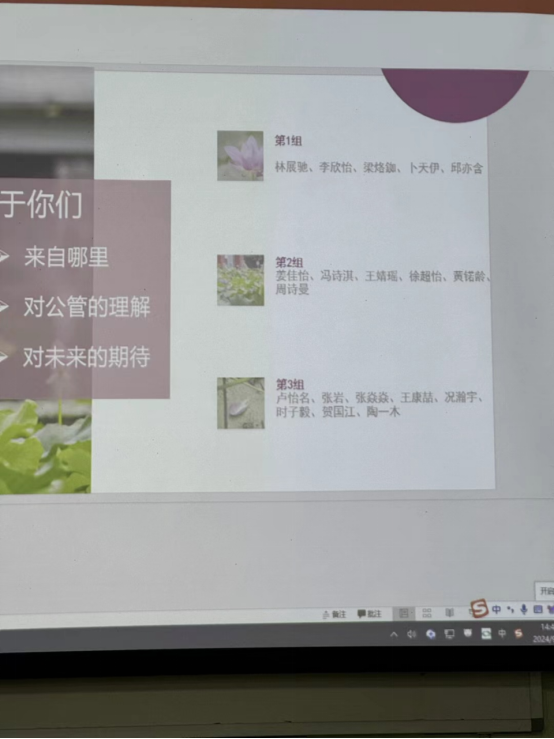 紧接着,同学们热烈讨论了自己对公共管理学科的认识和期待。班主任老师对同学们的讨论从公共部门研究和公共政策研究两大维度进上进行了总结和解析,并对比了公共管理与经济管理之间的异同,帮助同学们在短时间内对公管学科的研究对象、方法及其独特魅力有了初步但生动的认识。