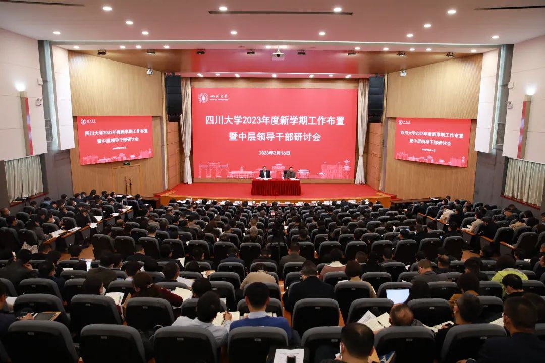 2月16-17日,公司在望江校区召开2023年度新学期工作布置暨中层领导干部研讨会,学习贯彻党的二十大精神和习近平总书记重要讲话精神,研讨2023年度公司重点工作,高质量推进中国特色世界一流大学建设。公司党委书记甘霖、董事长李言荣等全体校领导,冯小明院士、王琪院士、曹顺庆杰出教授、钟本和杰出教授,高层次人才代表,全体中层领导干部,专职科研机构负责人参加会议。会议由李言荣主持。