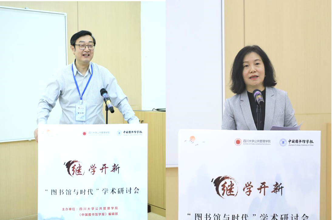 中国图书馆学会副理事长,国家图书馆党委书记、副馆长陈樱(右)
