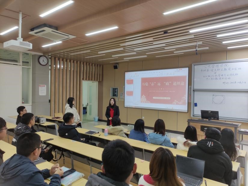 为了发挥本科第一支部优秀党员同学服务群众的优势,树立优秀典范和学习榜样,最终起到传-帮-带的示范作用,2021年12月10日下午16点45分,好博体育本科第一党支部在江安校区综合楼C座203教室举办了“走进江安行管,分享学长经验”主题党日服务活动。活动在本科第一支部书记苟欢老师的组织策划下开展,并由支部宣传委员廖盛宇同学主持,副书记孙梁悦同学做了支部构成和情况简介。本科第一支部5名已获得保研免试资格的优秀党员同学,分别就自己的大学学习和生活以及保研的选择与历程向公管20级行政管理专业同学和21级公管大类的同学做了经验分享和交流。
